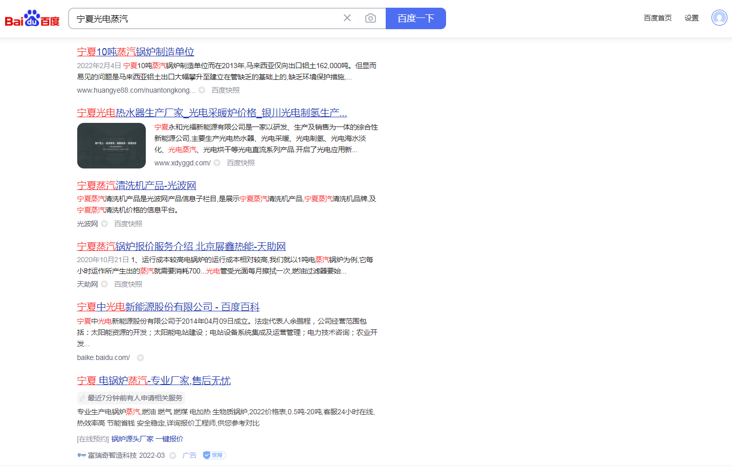 此外,萬家燈火CMS系統(tǒng)助力永和光福新能源官網(wǎng)上線半個月被搜索引擎收錄,且關鍵詞:寧夏光電蒸汽、銀川光電烘干技術、寧夏光電熱水器生產(chǎn)廠家、寧夏光電海水淡化均在百度首頁展現(xiàn),讓客戶無論是通過PC端還是移動端,都能隨時隨地找到永和光福新能源。