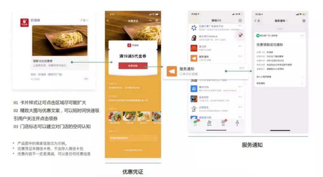 此外,借助文案優(yōu)惠描述、門(mén)店定位顯示,多樣卡券派發(fā),門(mén)店可加強(qiáng)用戶到店消費(fèi)的行為驅(qū)動(dòng)杠桿。