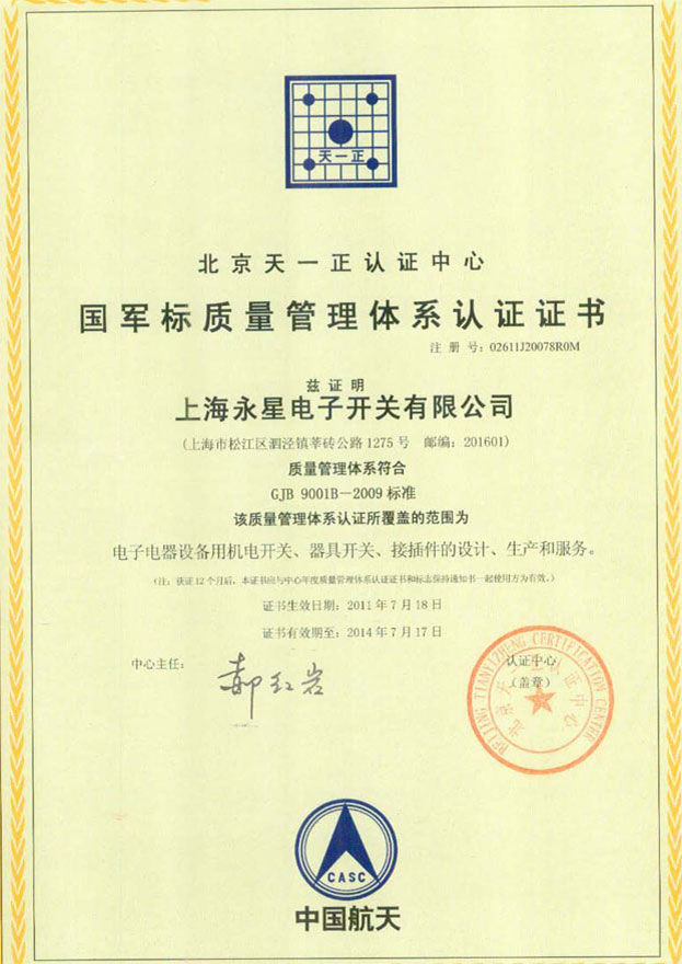 GJB國(guó)軍標(biāo)質(zhì)量管理體系認(rèn)證書