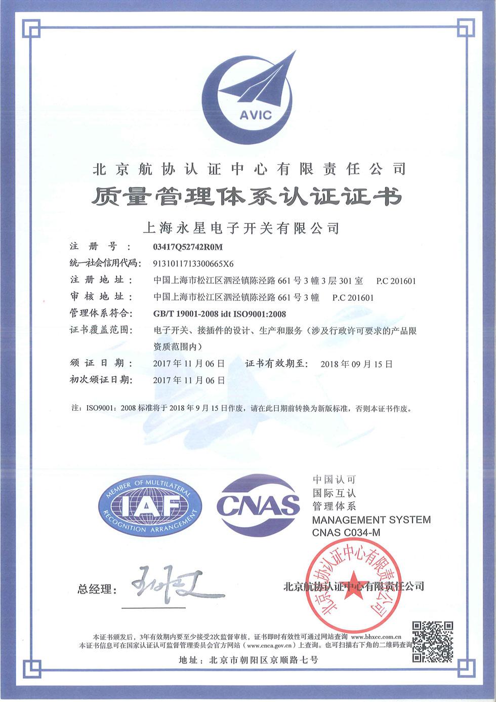 ISO9001:2008質(zhì)量管理體系認(rèn)證證書