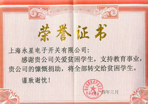 上海永星電子支持教育事業(yè)獲得頒獎(jiǎng)。